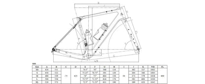 The RINOS Sandman1.0 Gravelbike is available in five frame sizes - 50 cm, 52 cm, 54 cm, 56 cm, and 58 cm - and suits cyclists with heights between 155 cm and over 199 cm. With a weight of approximately 9.8 kg, the bike is easy to manoeuvre and durable for all types of routes.